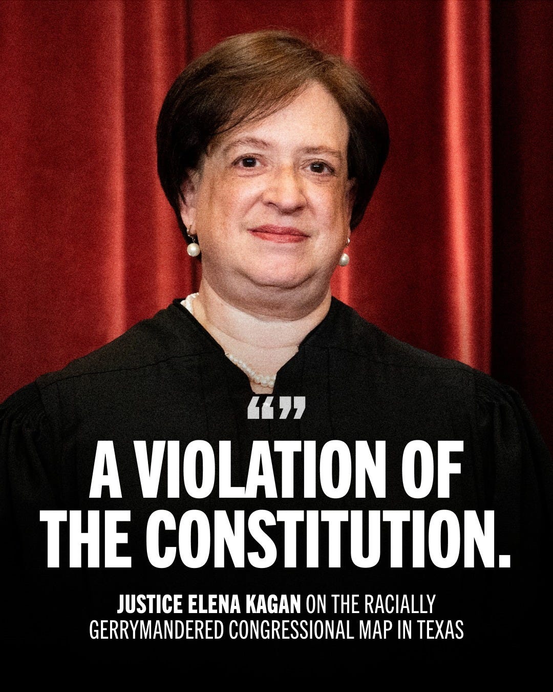 Last week, the Supreme Court ruled that Texas can use a racially gerrymandered congressional map, threatening fair elections everywhere. The map, which Donald Trump demanded, could give Republicans five more House seats. Justice Elena Kagan called the map “a violation of the Constitution,” as it threatens the integrity of contests in 2026.