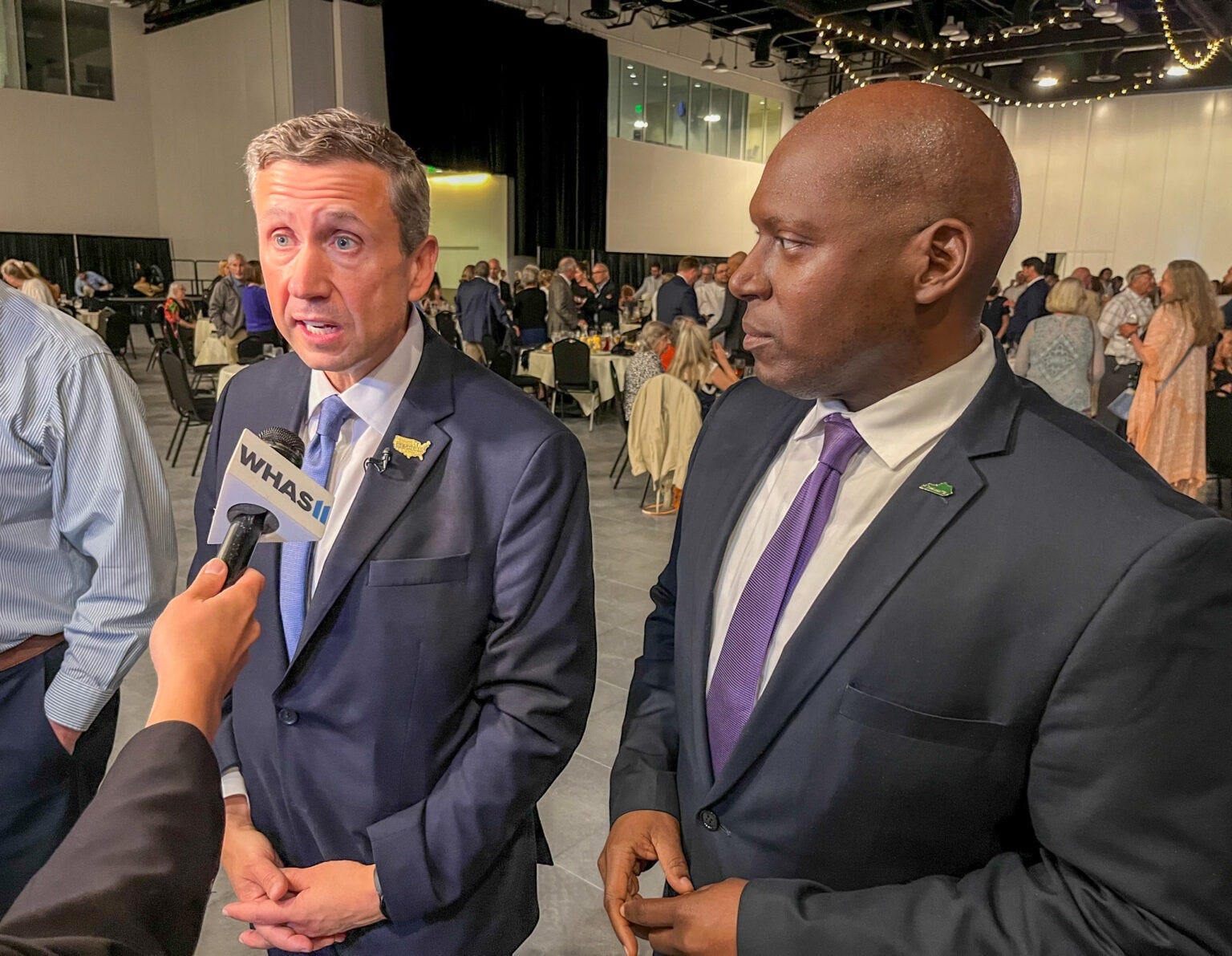Chair Elridge with DNC Chair Ken Martin at the KDP’s sold-out Forward Together Dinner in Owensboro, Kentucky.