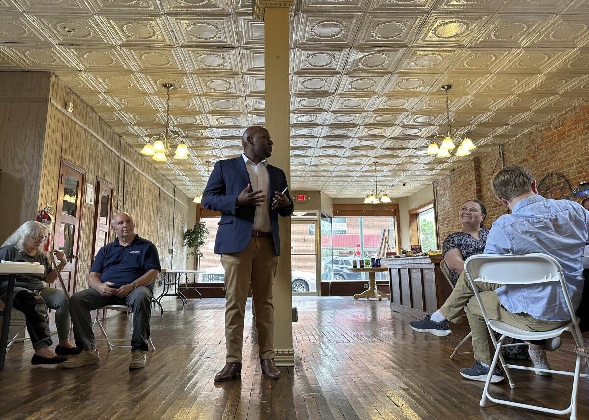 Chair Elridge addresses voters in Paintsville, Kentucky during the KDP’s Rural Listening Tour.