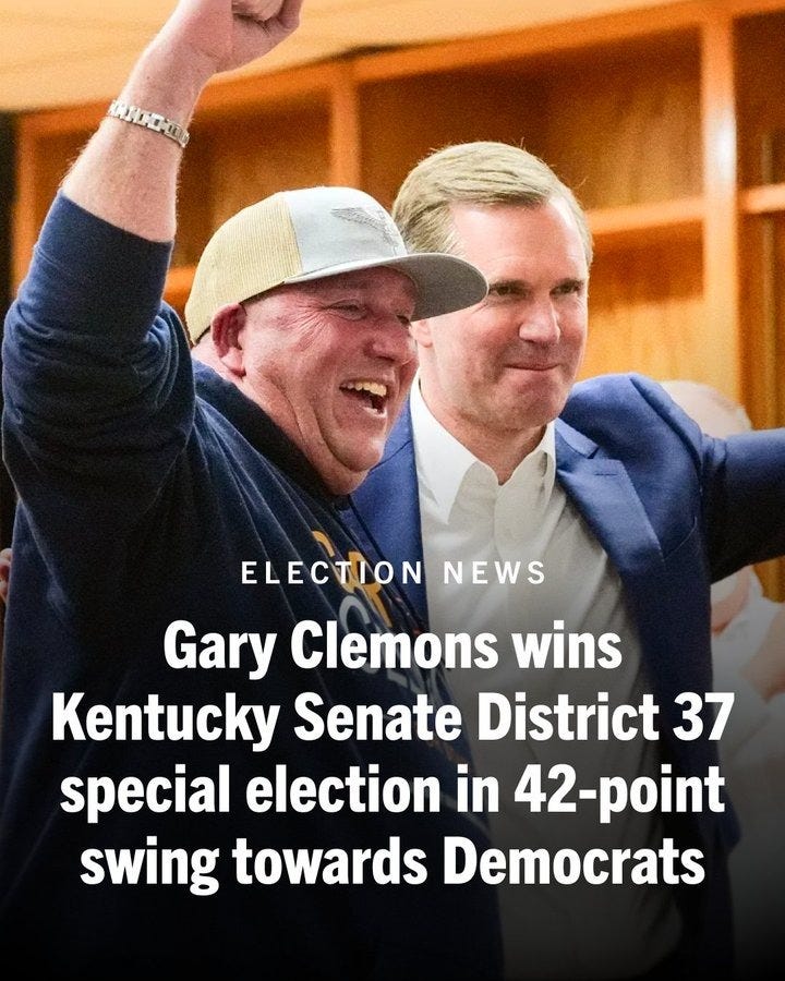 Last Tuesday, Democrat Gary Clemons won the special election for Kentucky Senate District 37! In another feat of Democrats’ historic momentum, Clemons won with a 47-point landslide victory. He overperformed the top of the 2024 ticket by a whopping 42 points.