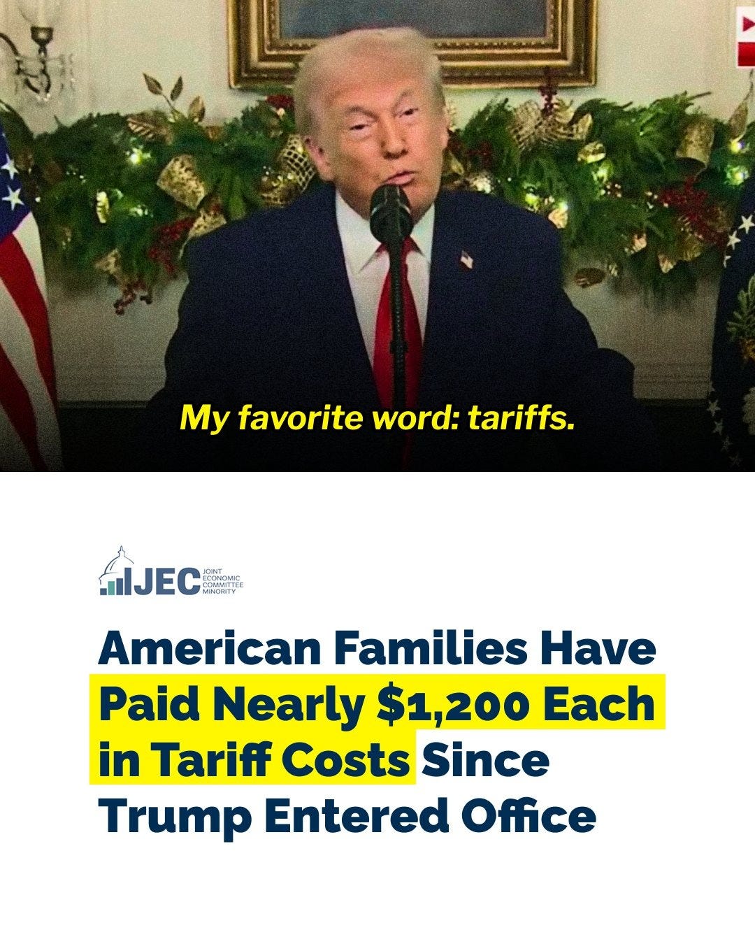 We all heard it. Trump claimed that his favorite word, “tariffs,” has brought success to the American economy. Here’s the reality: Trump’s disastrous tariffs are hurting small businesses and consumers, and have cost tens of thousands of American manufacturing jobs. The average American family has already paid nearly $1,200 in tariff costs.