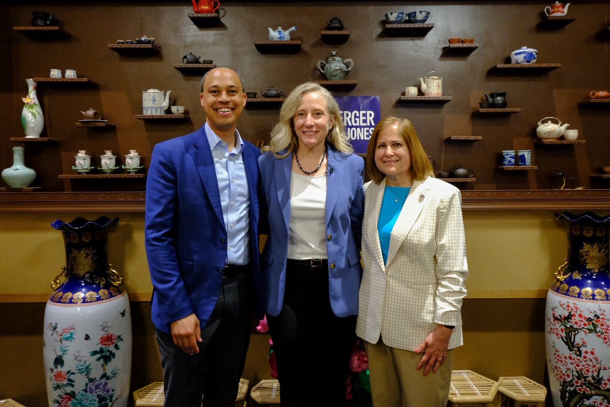 Pictured from left to right: Jay Jones, Abigail Spanberger, and Ghazala Hashmi