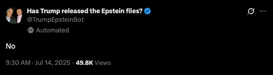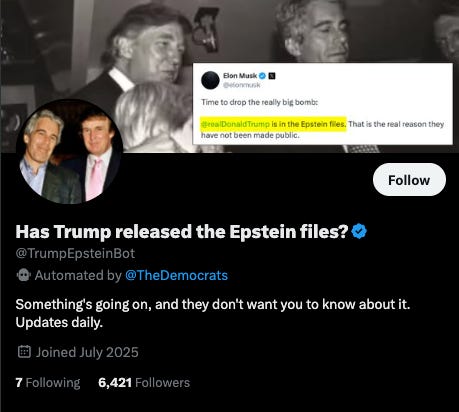 Follow @TrumpEpsteinBot on X, and share it with your network.