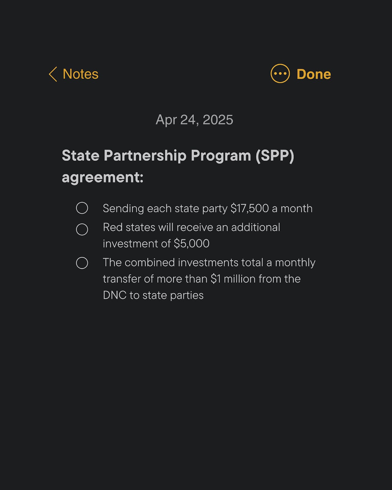 Powering up state parties — too many of our state parties do not have full-time, paid staff to do the year-round work of electing Democrats. The new State Partnership Program (SPP) agreement changes that by making a $1 million total monthly investment in every single one of our Democratic state parties.